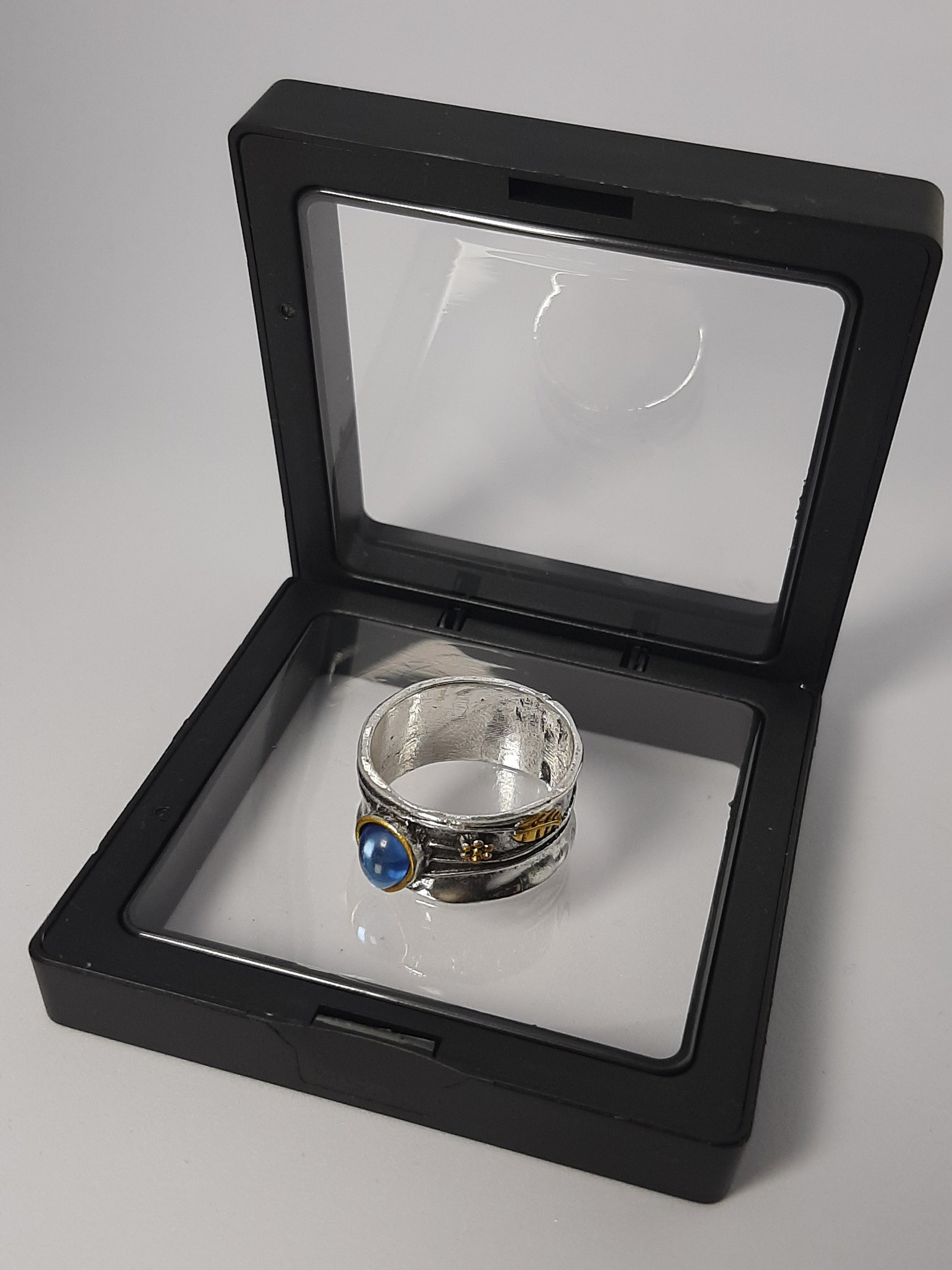 Bague bicolore pour femme – Un design délicat en forme de goutte et de pétales, sublimé par une pierre d’aigue-marine éclatante. Un bijou raffiné, idéal pour une mariée au style moderne et romantique.