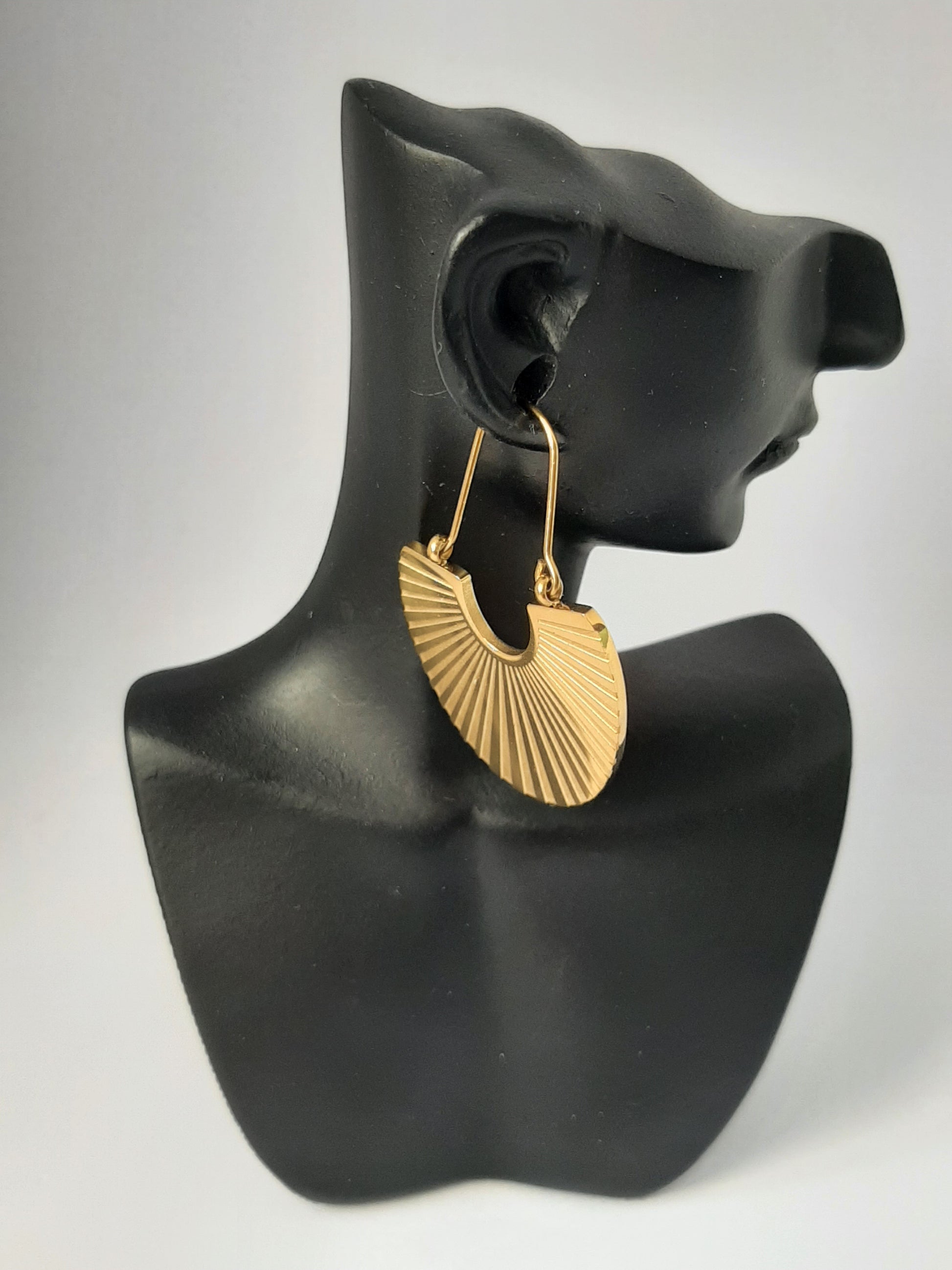 Boucles d'oreilles goutte bohèmes en acier inoxydable 316L – Finition dorée et design géométrique en forme d'éventail, ces boucles d'oreilles allient élégance et originalité. Un bijou raffiné au style bohème chic, idéal comme cadeau de fête ou pour sublimer vos tenues avec charme.