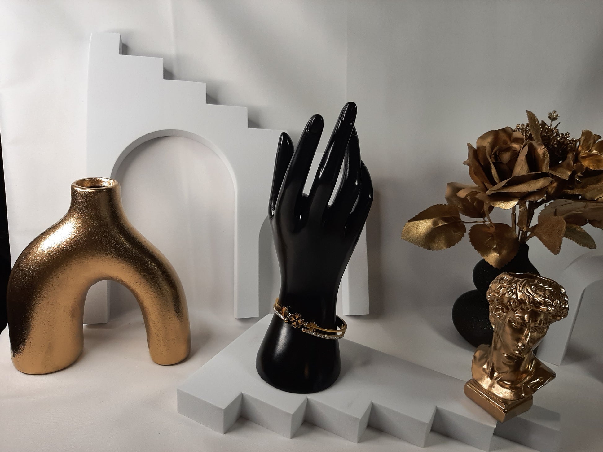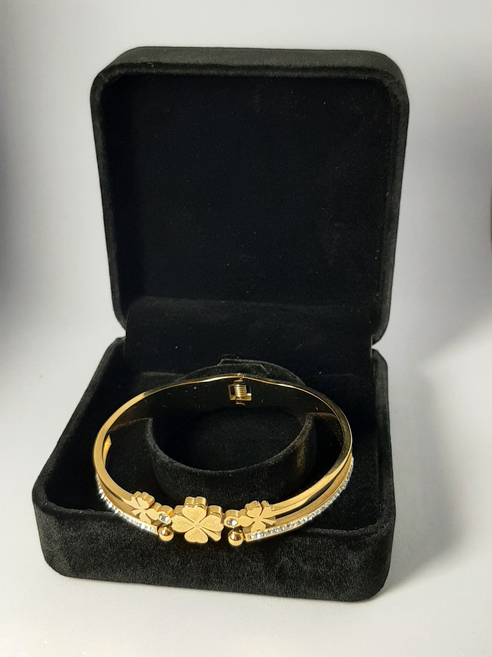 Bracelet doré en acier inoxydable pour femme – Orné de strass scintillants et d’un motif fleuri délicat, cet accessoire raffiné est parfait pour illuminer vos tenues de fête. Un cadeau chic et féminin.