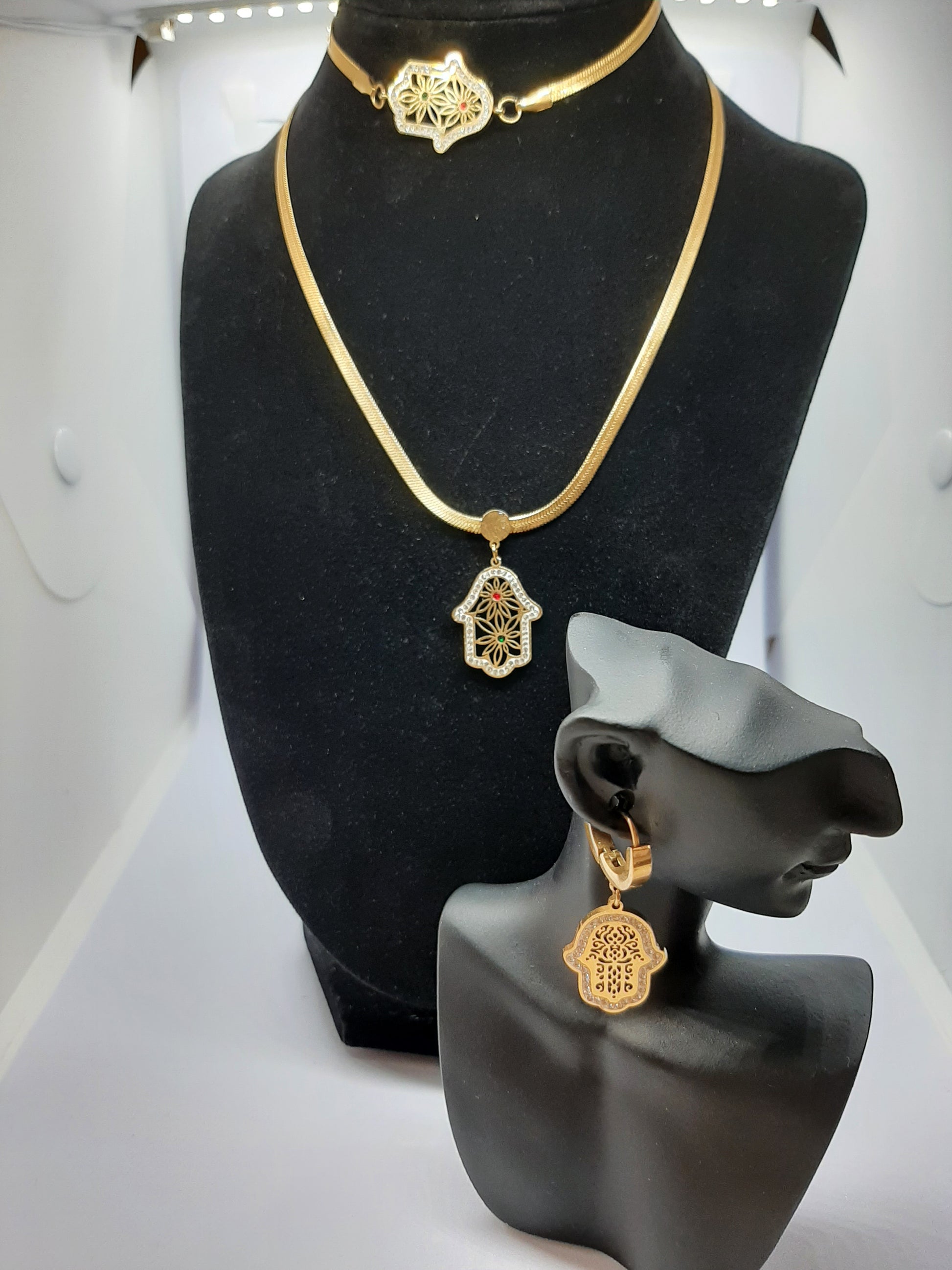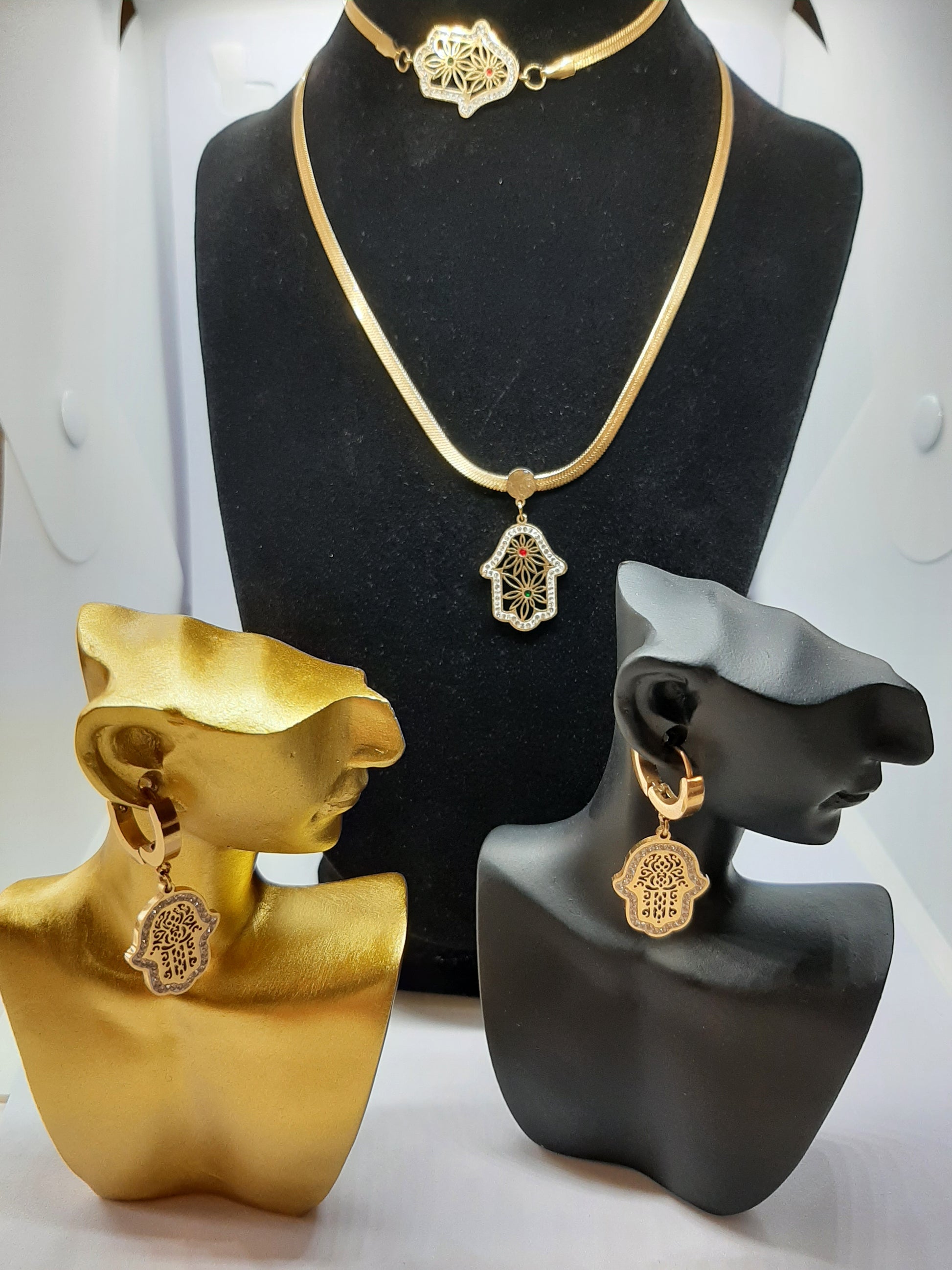 Ensemble de bijoux en acier inoxydable – Main de Fatima (Khamsa)