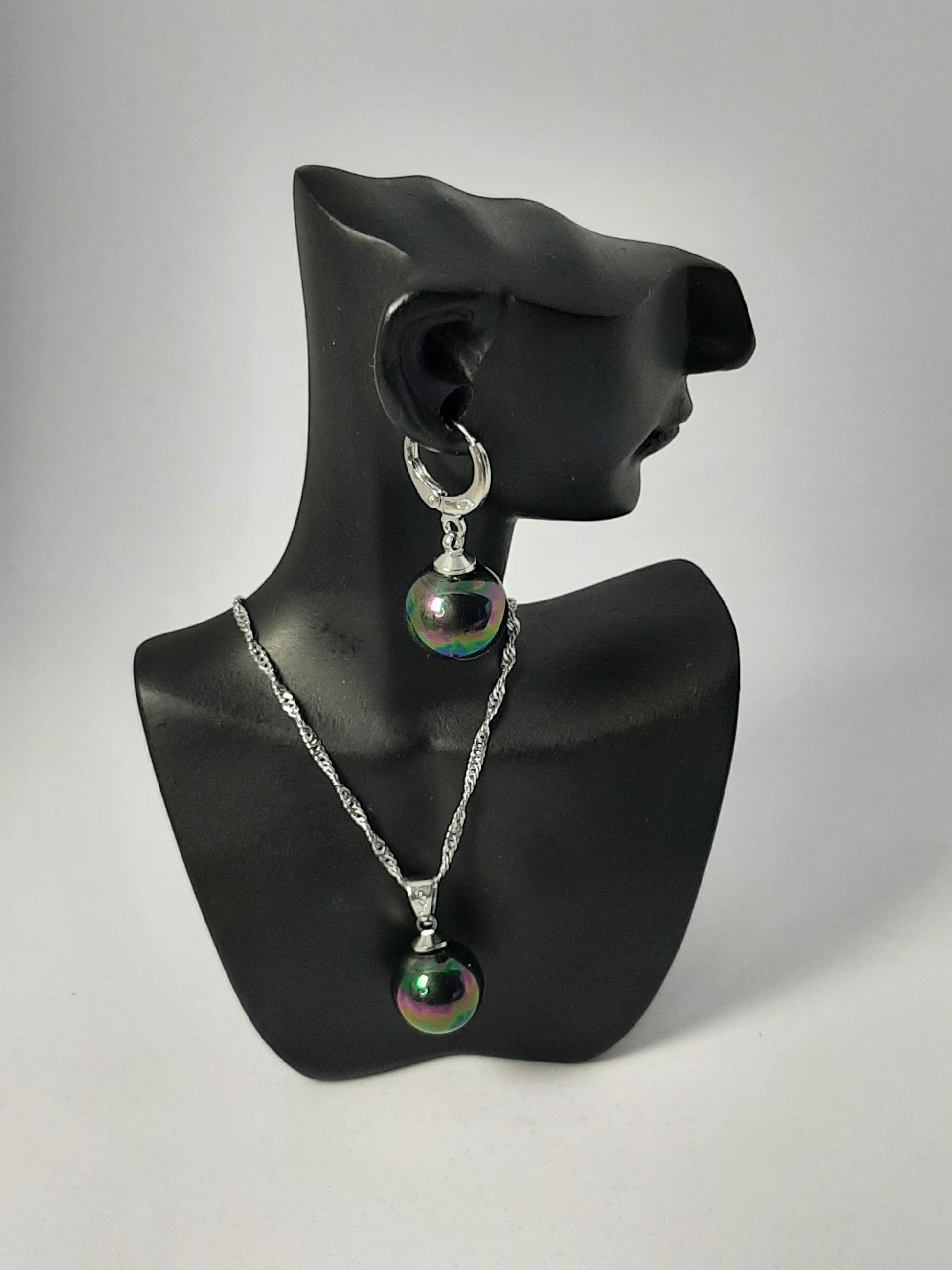 Parure Collier avec Boucles d'oreilles en Argent 925 Sterling avec perle