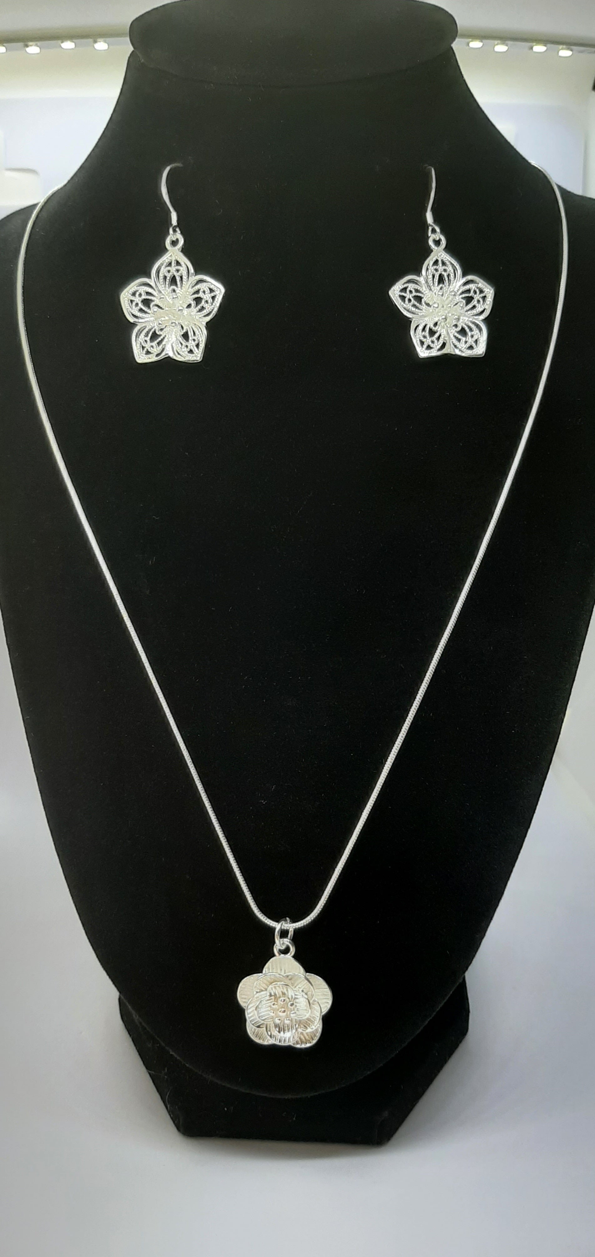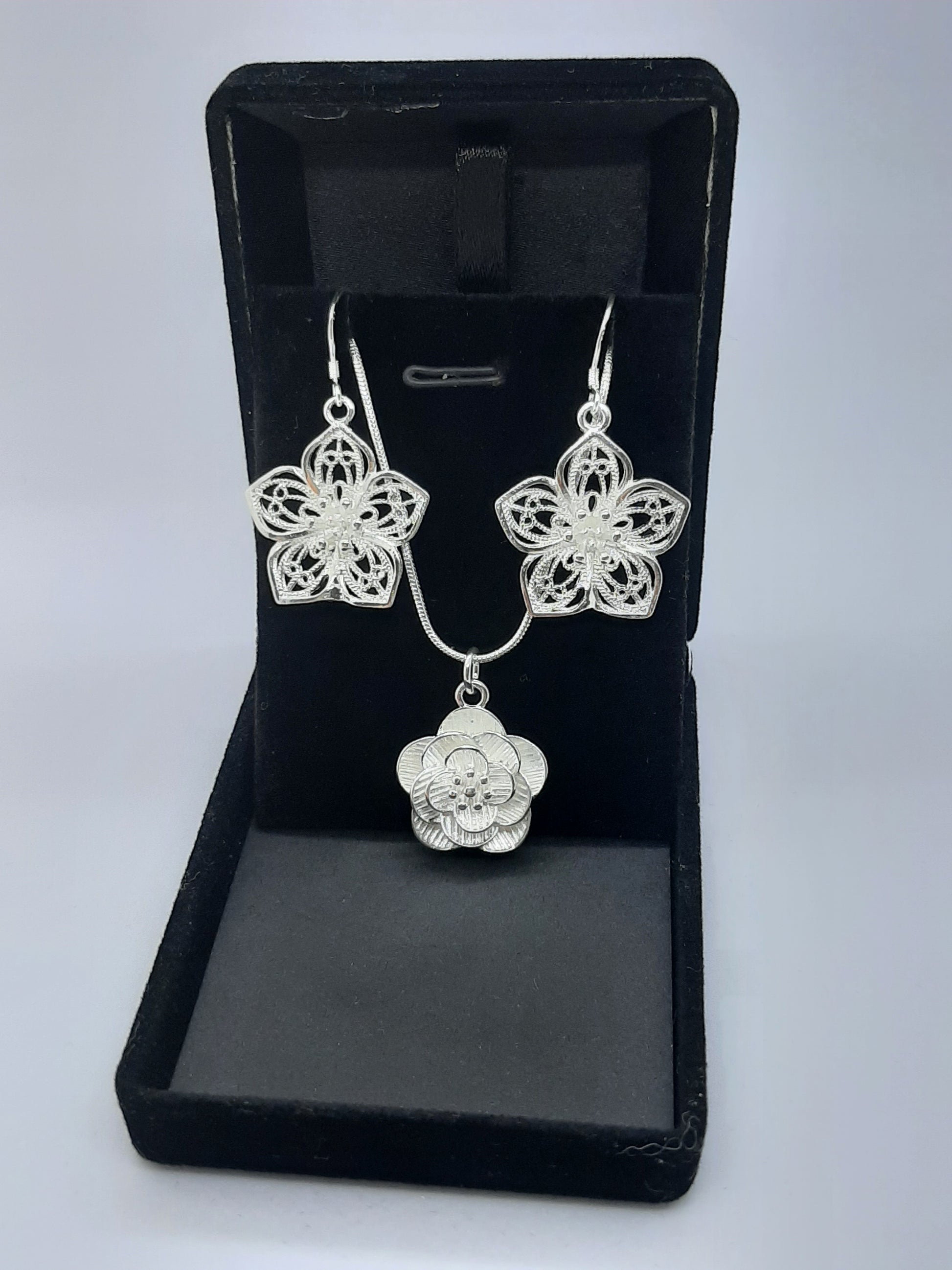 Ensemble raffiné en Argent Sterling 925 – Pendentif fleur de rose et boucles d’oreilles assorties